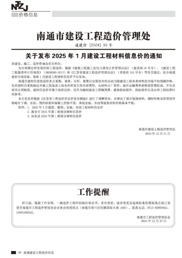 盐城市2025年1、2月(第1期)建材价格PDF扫描件下载
