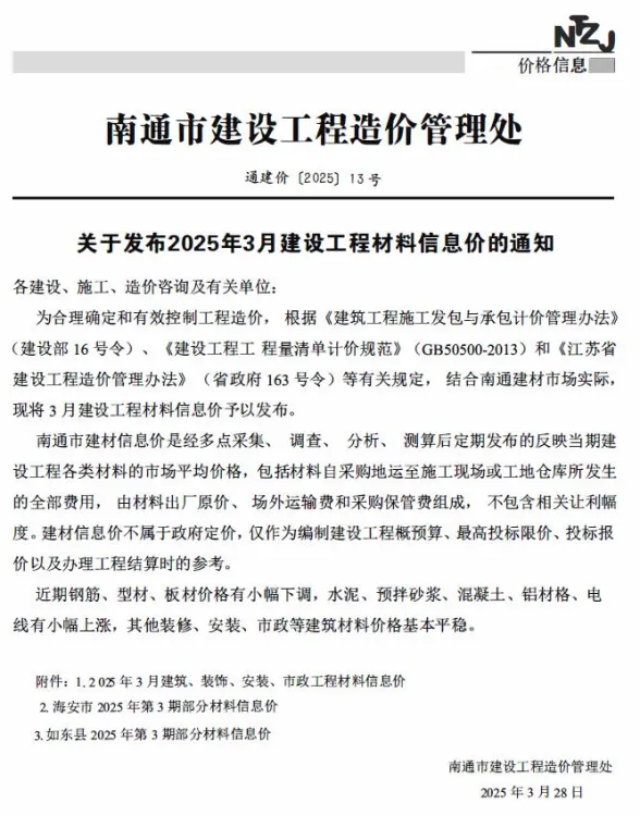 无锡市2025年3月建材厂商建材价格PDF扫描件下载